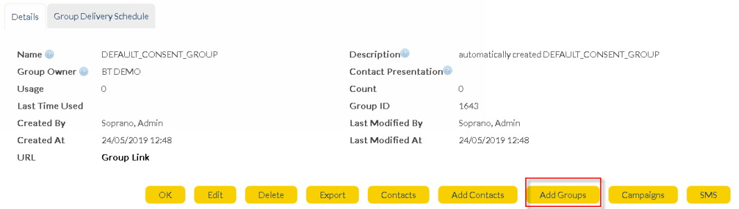 Click 'Save' to add the selected group/s to the master group. Click 'OK' to return to the 'Group Details' screen.