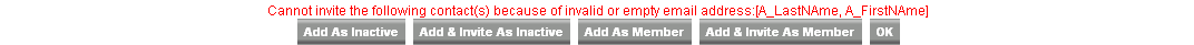 Cannot invite the following contact(s) because of invalid or empty email address:[A_LastNAme, A_FirstNAme]