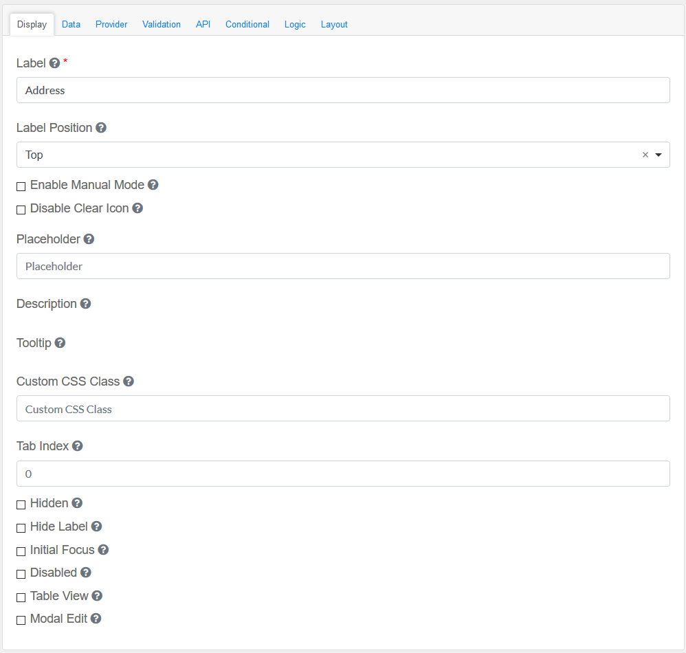 Drag and drop the Address Field element into the Mobile Editor, to open up the Address form.