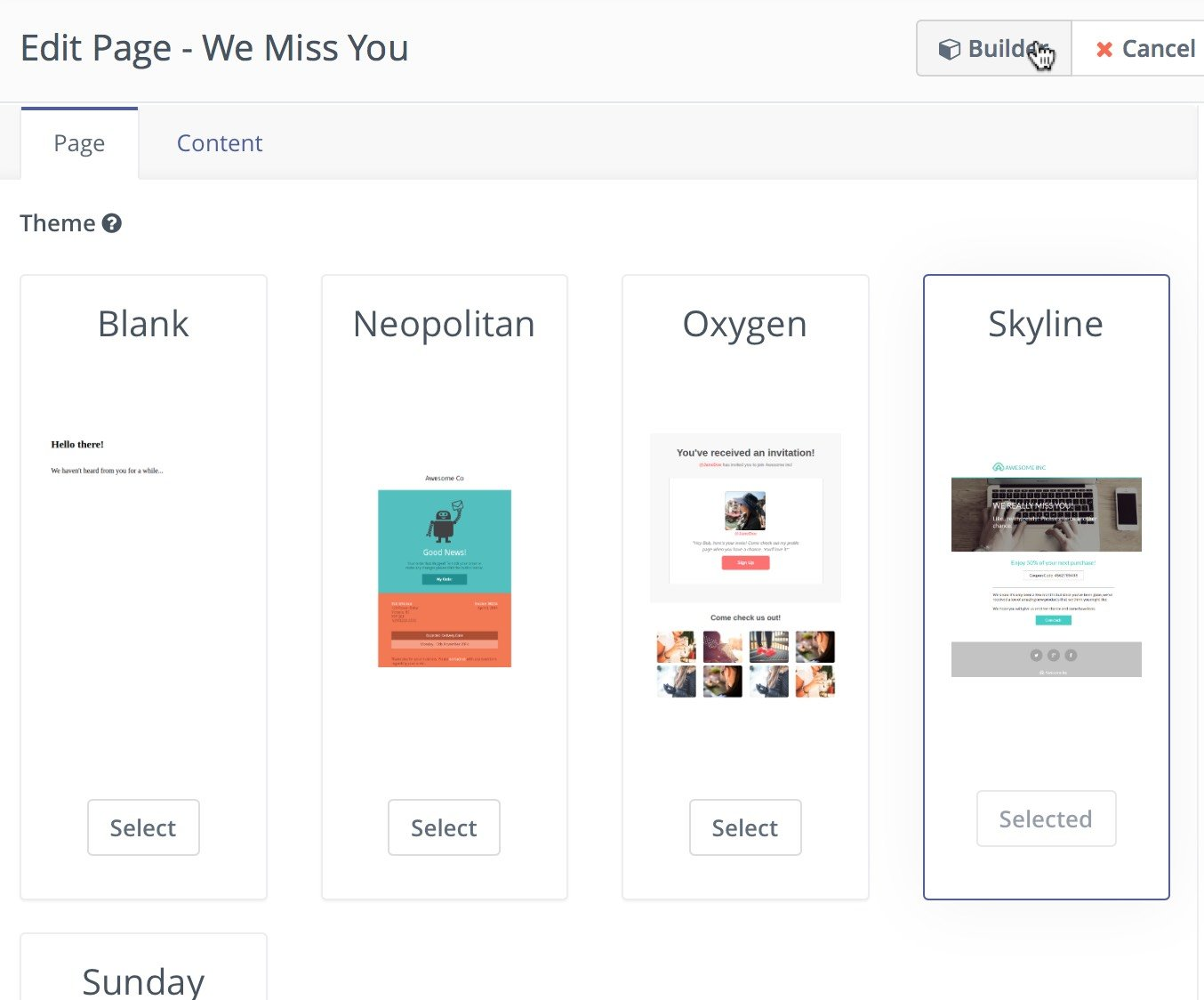 Every part of the template is editable via drag and drop. Click in a text box to edit. Click on an image to replace. Once Users are satisfied with the edits, click "Close Builder" to see a representation of the page.