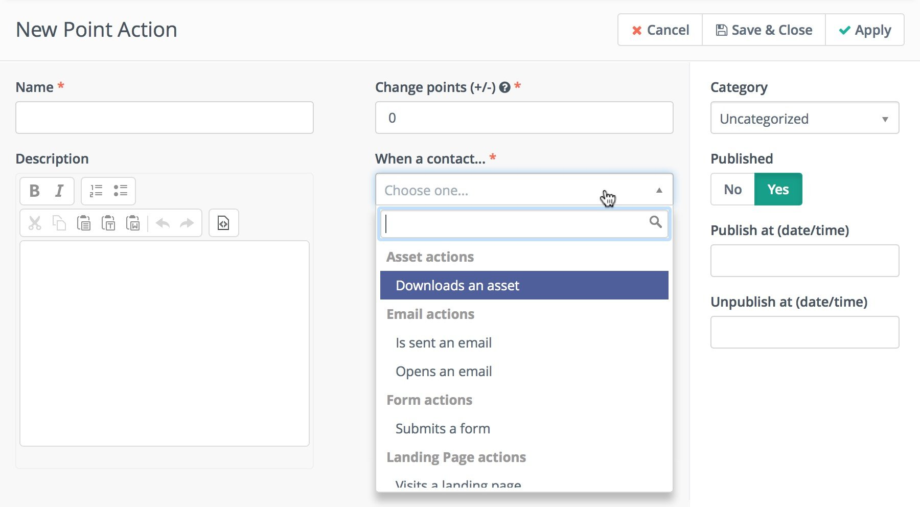 Points provide a way for contacts to be properly weighted. These points have both triggers and actions. Each term will be properly defined below to provide an understanding of how points function within overall marketing automation process.