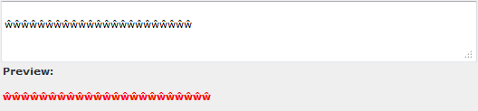 If you use a 16 bit character set, i.e. Chinese characters then the message will be shortened to 70 characters per message segment and the preview box will display all 16 bit characters in red.