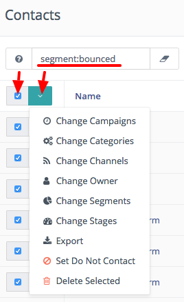 Filter contacts in the segment. The batch delete action in the Contact table allows deletion of up to 100 contacts at one time.