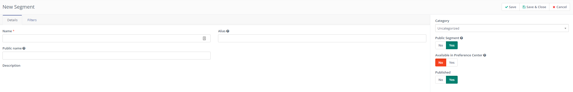 To create a new segment navigate to Segments in the menu, and click on 'New'.