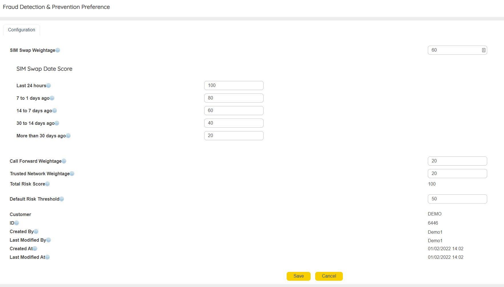 Once the overall SIM Swap weightage has been assigned, the Admin can assign Weightage split based on a different time gap ranges.