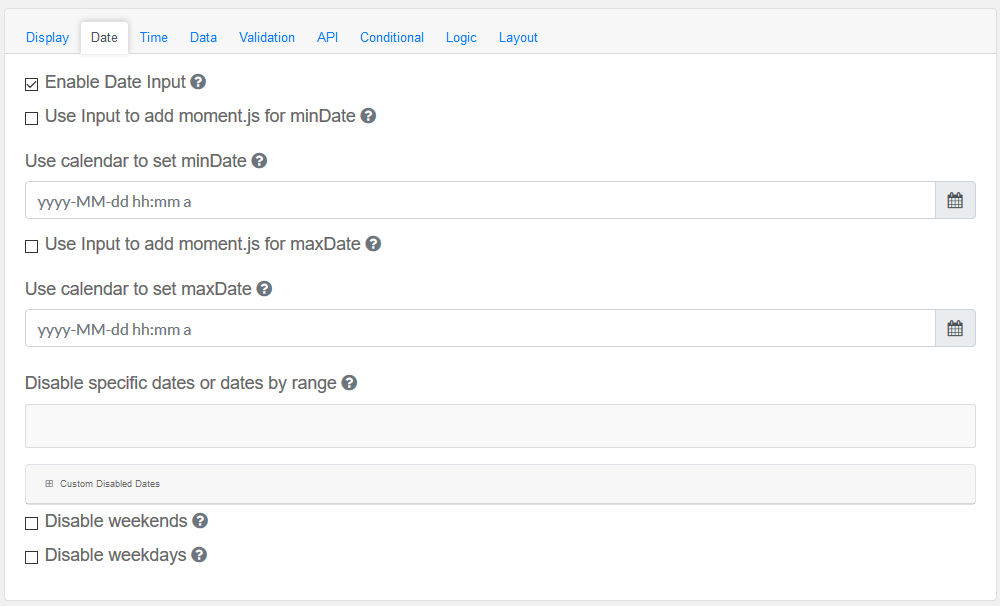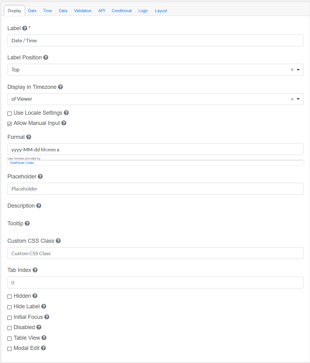 Drag and drop the Date/Time Field element into the Mobile Editor, to open up the Date/Time form.