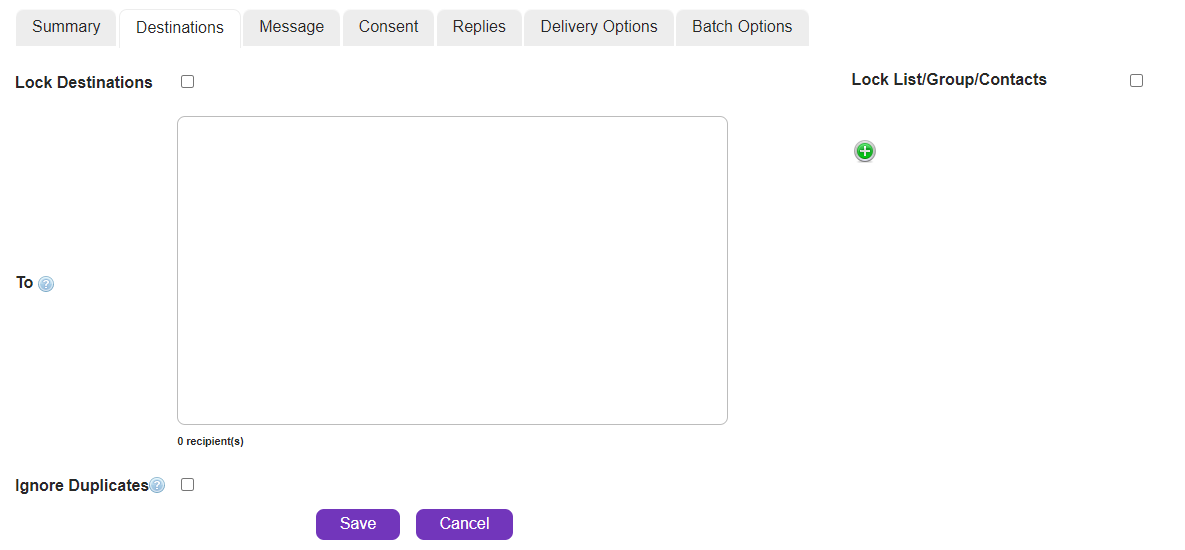 •WHITELIST - Messages will only be sent to those numbers that are contained in both your destinations and the chosen whitelist.