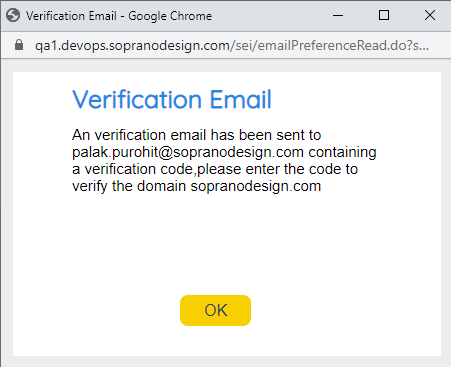 Once Users finish the Email Domain verification use the pop-up to complete the process.