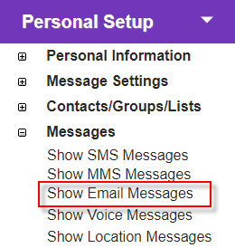 Click the 'Show Email Messages' link in 'Personal Setup > Messages' to open the 'Email Summary' screen.