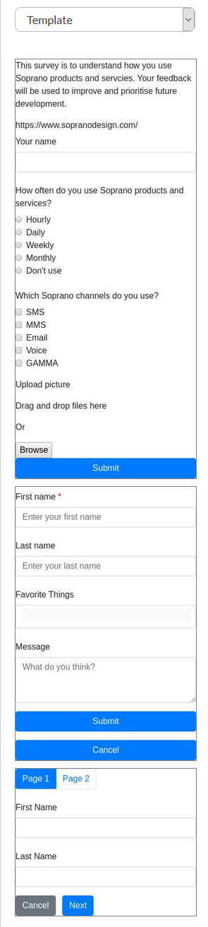 Drag-and-drop any of the available templates presented here to create a form to be filled out, radio button based options to choose etc.