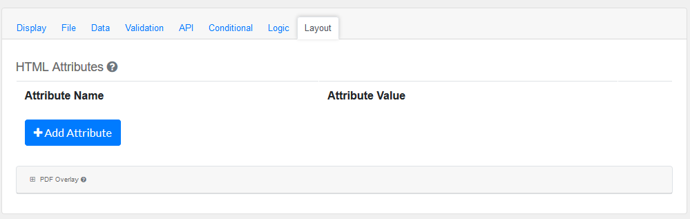 Note: Attributes provided by other component settings or other attributes generated by form.io take precedence over attributes in this grid.