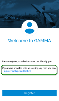 In addition to standard functionality, administrators are also able to pre-provision a key a for the user to enter when they are activating their GAMMA mobile app. Pre-registering a user with an email key allows a customer administrator to pre-allocate a public key for a user's phone. This can be used to streamline the setup process for new users (they can copy and paste the key into the app instead of having to request one from the server via SMS) and can be used to remove the need for the registration SMS to be sent from the user's device.