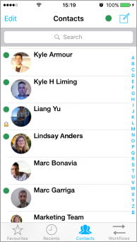 6. App Ready to Use : The app will then synchronise with the server and display the 'Contacts' page. Any contacts shared with you as defined by your user licence will be displayed.