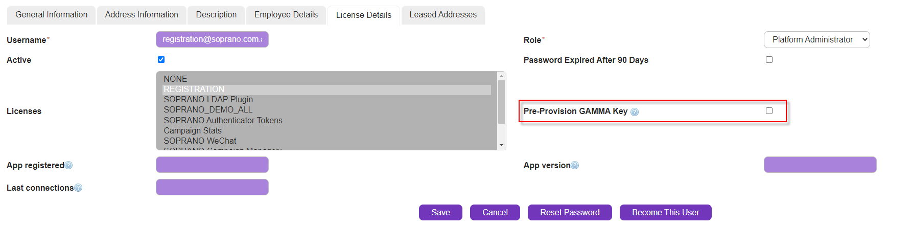 3. Go to the License Details tab and click the Pre-Provision GAMMA Key check box.
