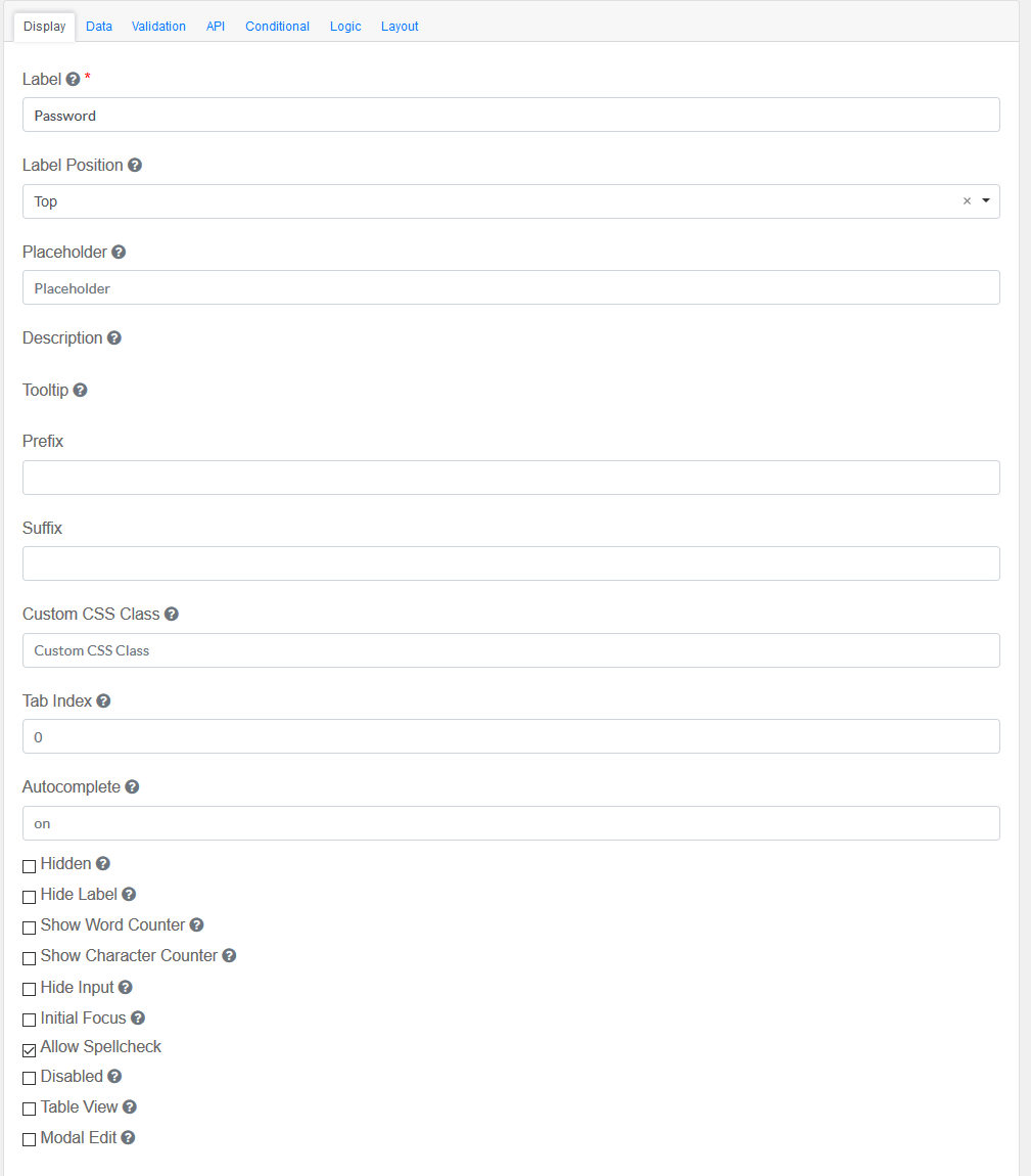 Allow Spellcheck : Allow spellcheck within the Password Field.