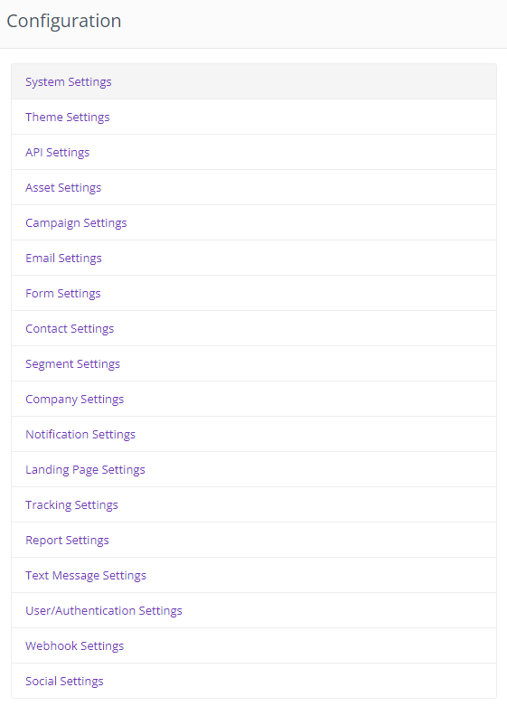 The Configuration section of Advanced Emailer houses the entire setup of all elements within the portal.