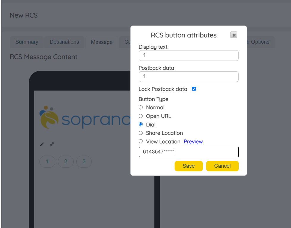 RCS Call To Action - Dial Phone Number