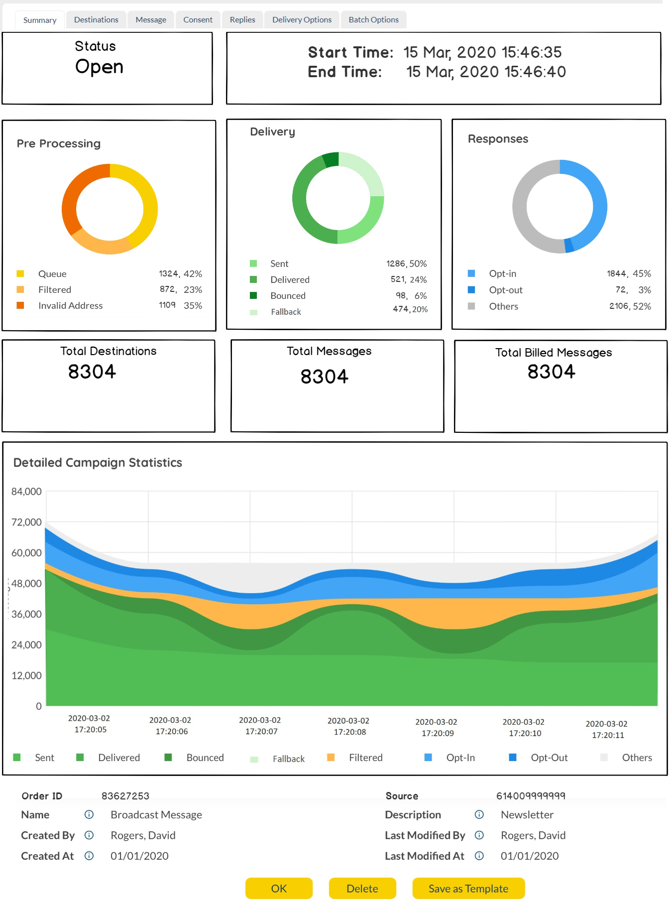 The Summary tab pulls up a graph showing how the messages has done so far.