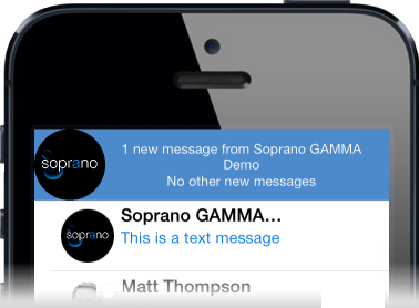 If Fall Back to SMS has been enabled by the system administrator, an SMS message will be received with either the message content (text) or a notification that a message is waiting (multimedia) and an invitation to install the mobile app. Once the app is installed a badge and banner notification for the received Gamma message will appear, even if the fall back SMS has been received.