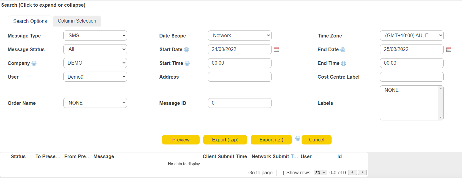 Generate or export a message report using a variety of filters.