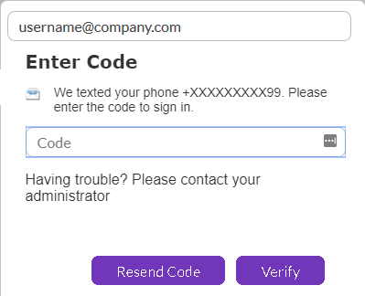 Upon clicking the continue button after entering the email, User is met with a pop up requesting a code that's sent to their registered mobile number.