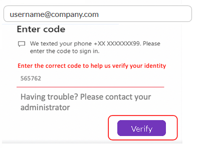 In case the User enters the incorrect code they are met with the below pop-up requesting the right code.