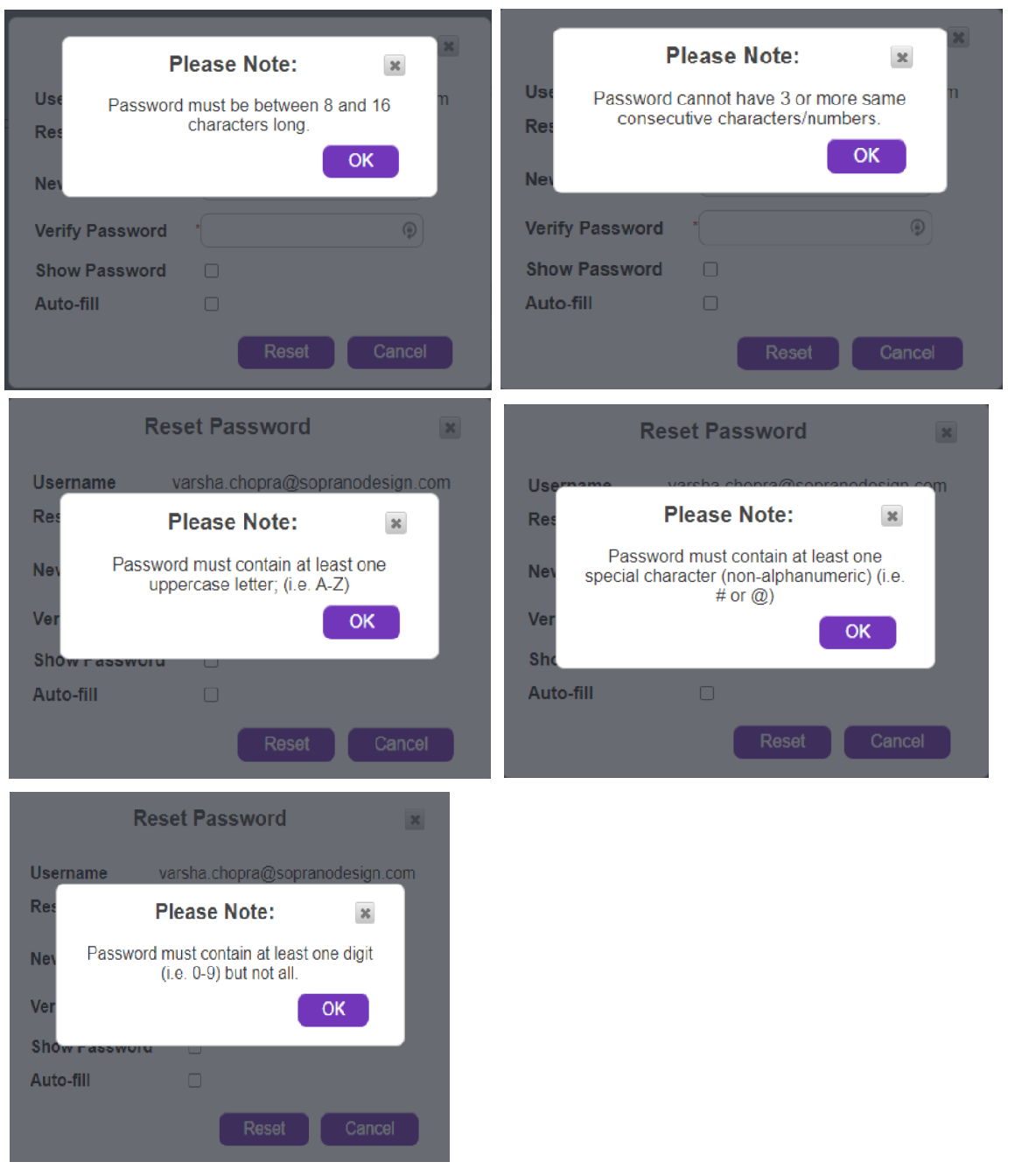 •Cannot have 3 or more single characters repeating (i.e. the password cannot contain 'aaa' or '111').
