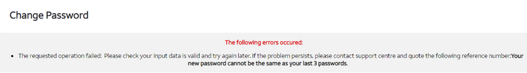 •Error message will be displayed if re-using passwords : “Your new password cannot be the same as your last 3 passwords.”