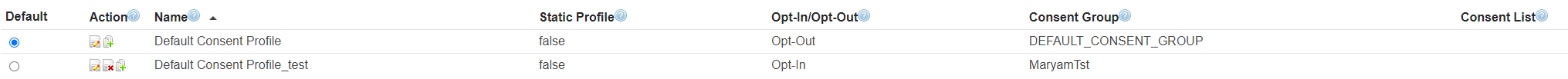 Click the radio button adjacent to the consent profile you wish to use as the default setting. Click the