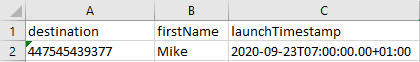 For Example ; 447545430377,Mike,2020-06-11T07:00:00.00+01:00.