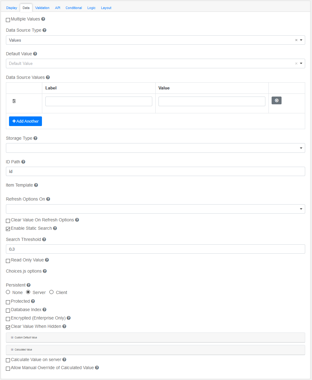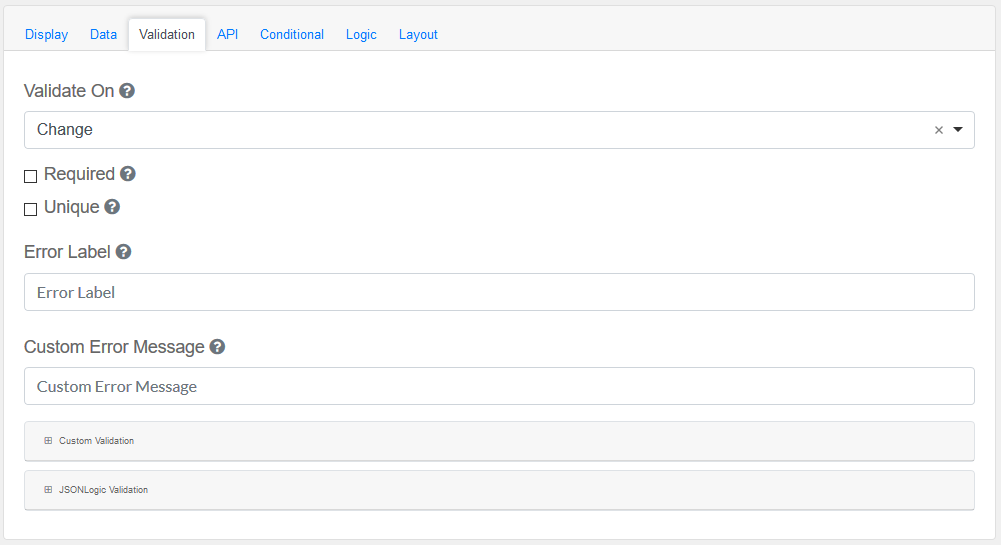 This section provides a map of HTML attributes for a component's input element. Note: Attributes provided by other component settings or other attributes generated by form.io take precedence over attributes in this grid.