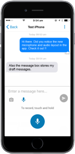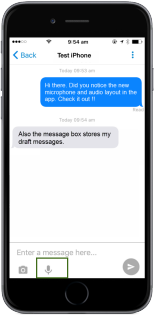 IMPORTANT: The audio will be sent immediately upon releasing the microphone icon. Please allow a few moments for the message to complete sending.