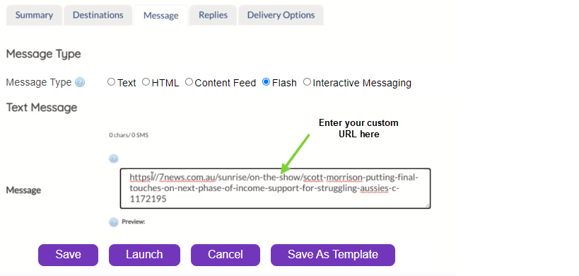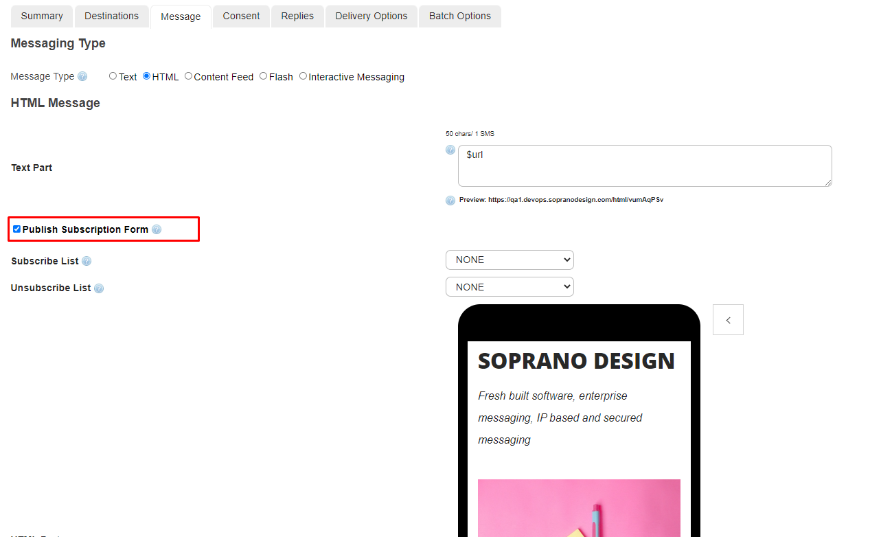 HTML allows you to harness the rich media options of a website or email and deliver it in the convenient, high engagement format of SMS. A unique URL is generated for each recipient, allowing tracking of the open rate of your HTML message. MailMerge capabilities in both the SMS and HTML portions of the message gives you control to personalise the message to your recipients.