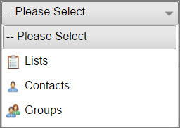 Please Select - Drop-down shows the option of Lists, Contacts & Groups.