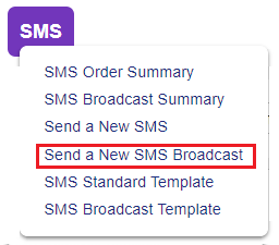 Click 'Send a New SMS Broadcast' to open the 'New SMS Broadcast' screen and compose a new order.