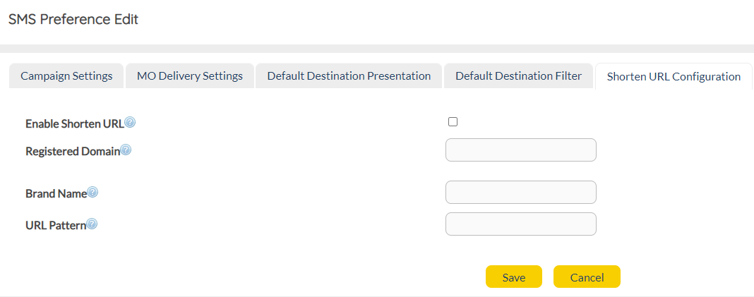 Shorten URL Configuration allows Users to customize and shorten the URL being delivered to customers. This is a licensed feature. Get in touch with Soprano Customer Support Team to find out how to enable this feature within User portal.