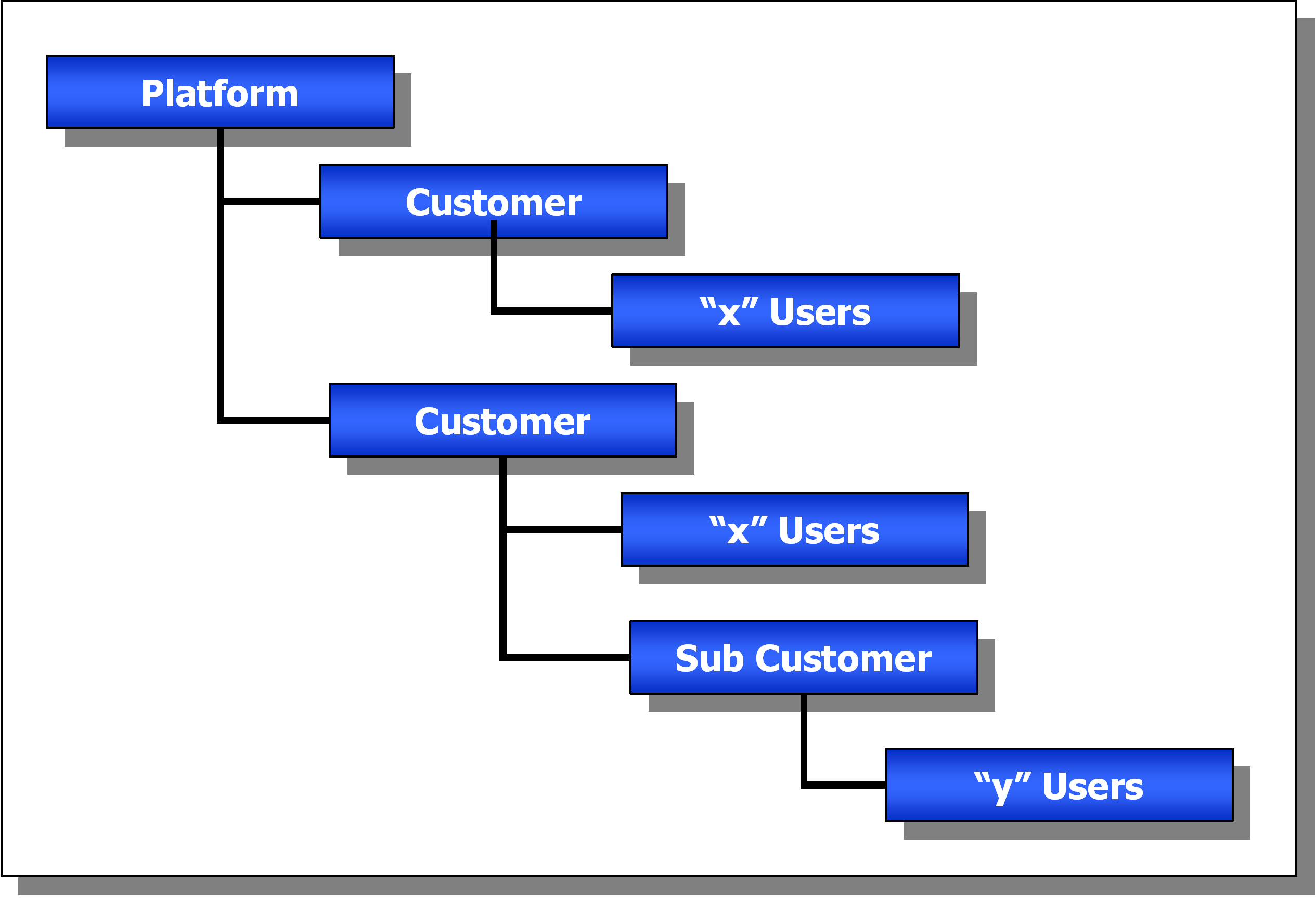 Users, as well as "Sub-Customers" or branches, can also be added within a Customer to provide partitioning within an organisation. |