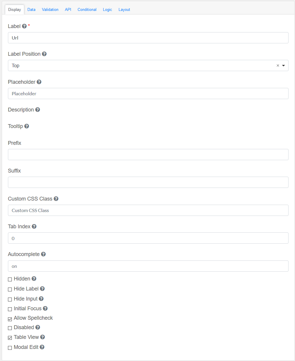 Drag and drop the URL Field element into the Mobile Editor, to open up the URL form.