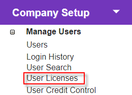 Click the 'User Licences' link in 'Company Setup > Manage Users' to open the 'User Licence Summary' screen.