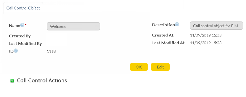 c) When invoked, Call Control Object 'Welcome' will play a audio tune followed by above message as text-to-speech, allowing Simon to provide key-press inputs at the end.