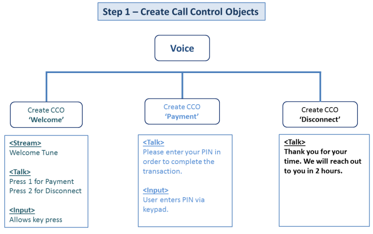 We will create three different CCO's using Voice for our example. We've shown a pictorial representation of steps we are about to follow: