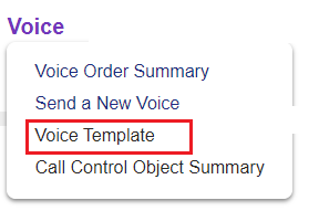 Click the 'Voice Template' link in 'Personal Setup > Templates' to open the 'Voice Order Template Summary' screen.