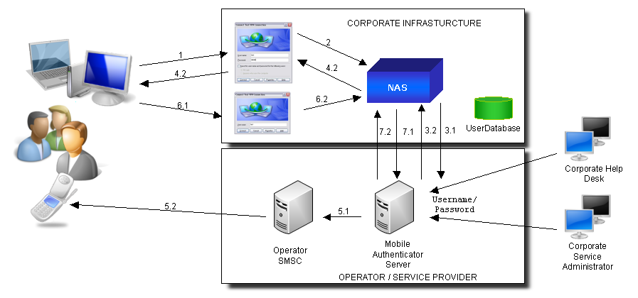 Step 7.1 The NAS requests validation of the complete set of parameters: username/password/SMS token