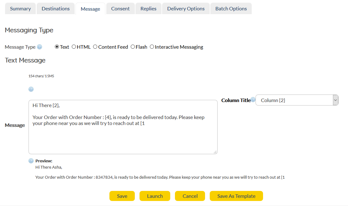 Note: This feature (Show SMS Messages) is a licensed feature. User who wish to utilize this feature must procure the "Simple Template Messaging" (to only send messages - SMS Home Field) and "Simple Template Messaging Replies" (check the replies received over the messages sent and view message reports - Show SMS Messages Field) license.
