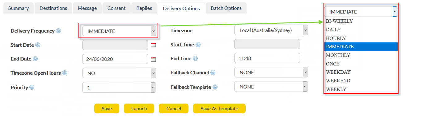 Enter appropriate batch delivery options.