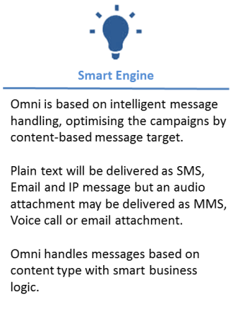 Omni offers ease of standard messaging mechanism along with intelligence of multi-channel delivery. Intelligence of Omni platform utilises existing SMS, MMS, IP Message, Email & Voice capabilities to build a one-stop solution for all users. Let's look at the benefits Omni brings in to your enterprise.